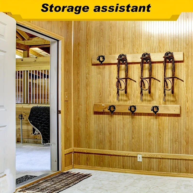Each hook features a smooth, rounded end to prevent damage to leather and stitching, while the strong metal construction supports heavy use in busy barns. Mount them on stall fronts, tack room walls, or inside trailers for streamlined storage wherever you need it most.