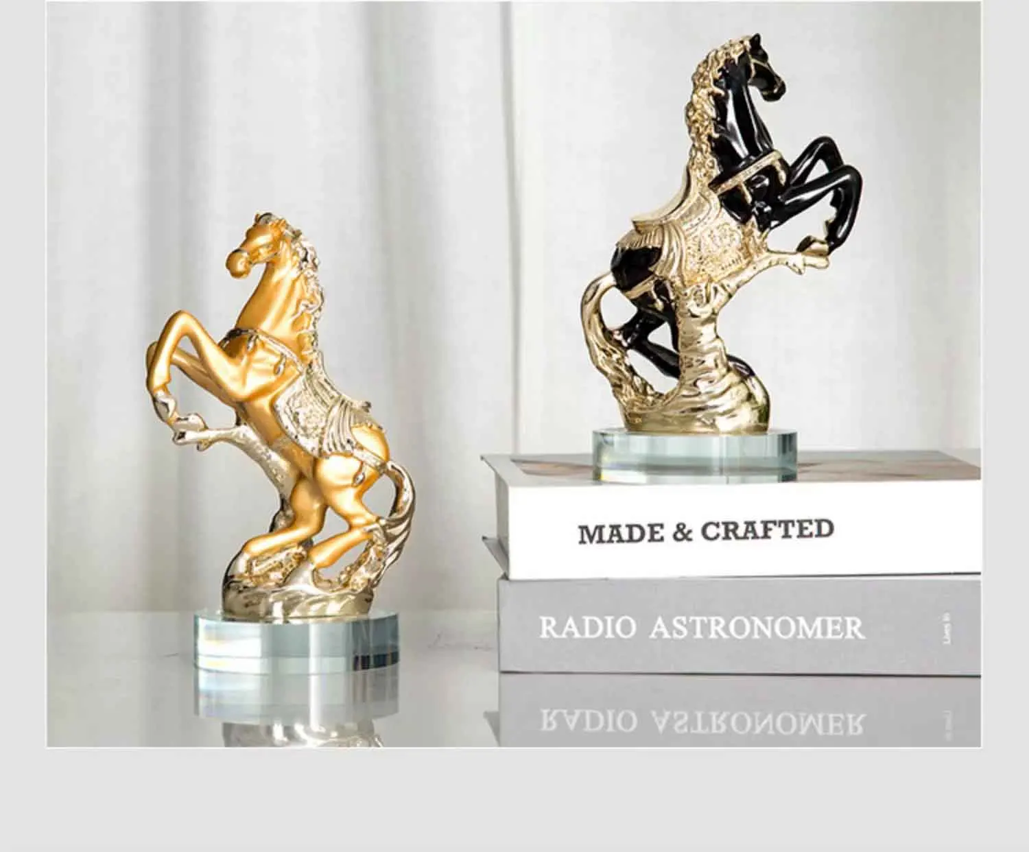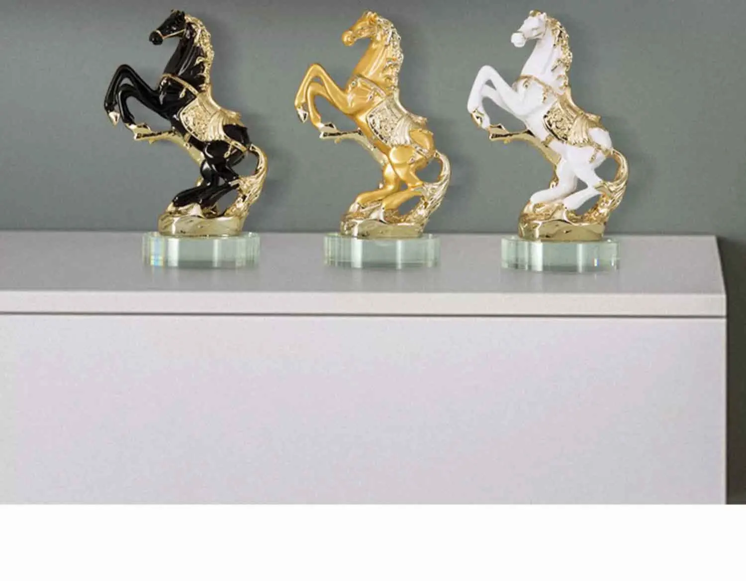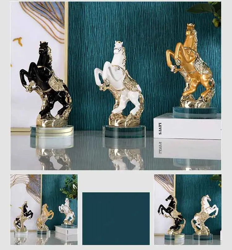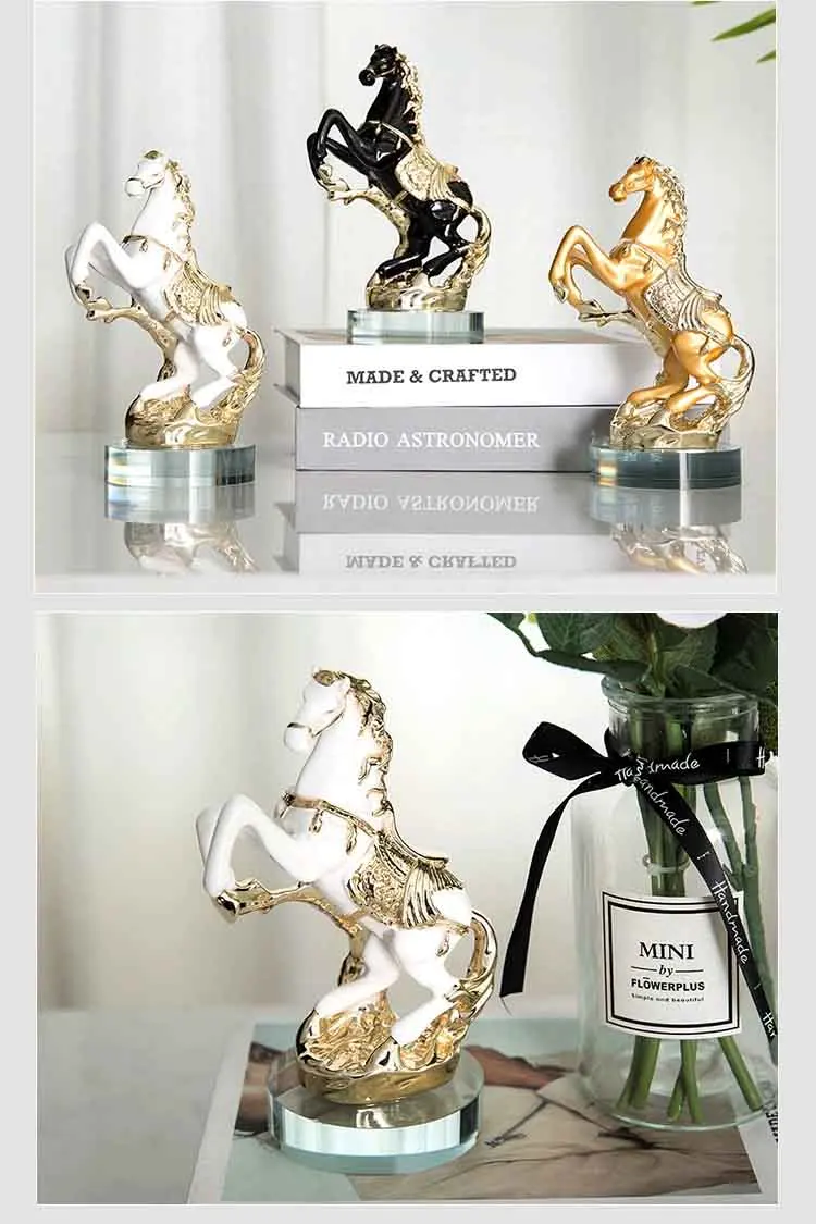 11. Details: ① Horse shaped design, vivid and lifelike, detailed and realistic, with a lifelike overall depiction. ② The details are finely processed, the texture is clear, and the overall decoration is more textured Adopting high-temperature electroplating technology to make the product more beautiful and upscale Using a transparent glass base, with a transparent texture and a stable placement.
