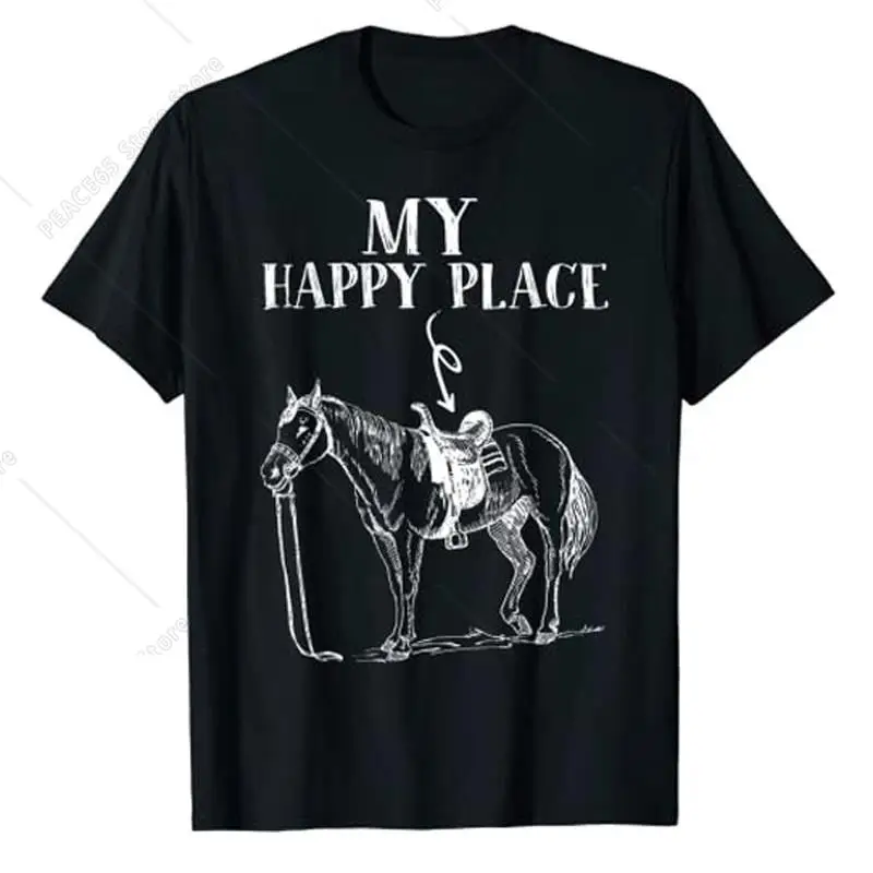 My Happy Place Horse Riding Horse-Lover for Women Girls T-Shirt Funny Awesome Tee Streetwear Tops Summer Fashion Graphic Outfit